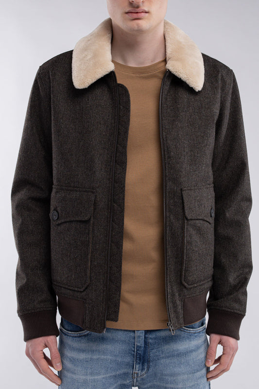 Blouson aviateur en lainage col sherpa B-MARTEN MARRON FONCE